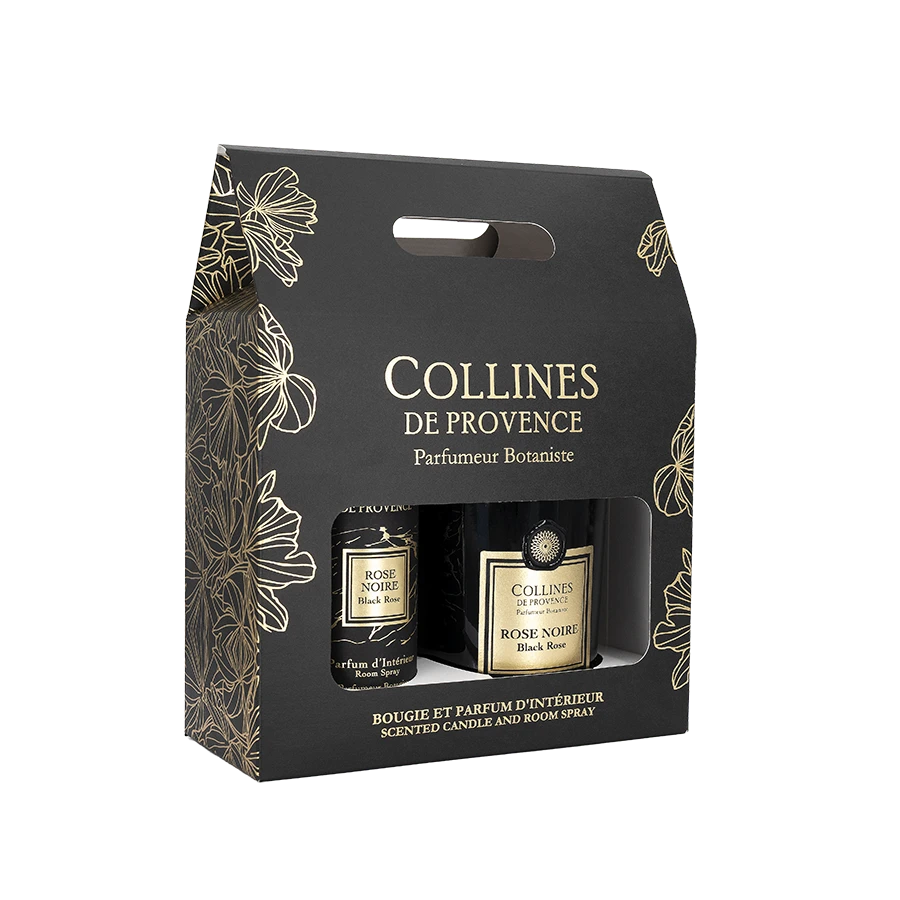 Let yourself be seduced by the elegance of the Coffret Rose Noire, combining a scented candle and a home fragrance with a refined, fruity scent. Presented in a black box adorned with hot-stamped gold, it's the perfect gift, both sophisticated and enveloping, for delicately perfuming the home.